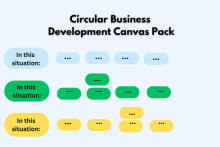 The Circular Business Development Canvas Pack is a set of tools designed to help businesses transition to circular economy models. It integrates key sustainability principles into business development, offering structured frameworks to map out circular strategies, value chains and impact.