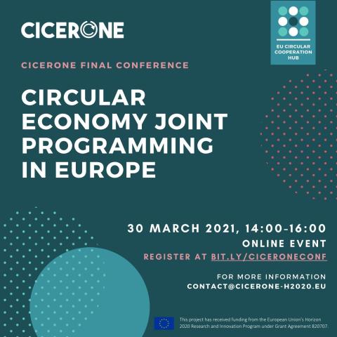 CICERONE is pleased to announce the final conference of the project, to take place online on 30 March 2021 from 2 p.m. to 4 p.m. CET. This will be an excellent opportunity to hear directly what partners have to say about the results of the project and experience first-hand the launch of the EU Circular Cooperation Hub and its online portal.