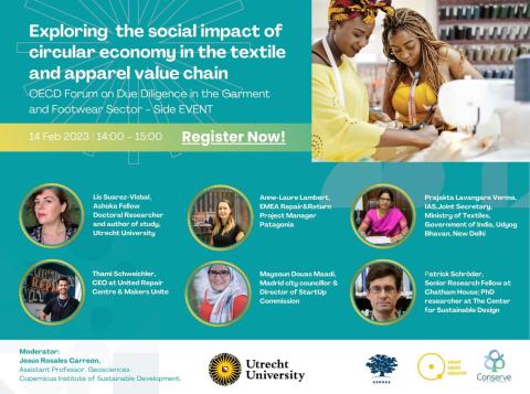 In this OECD Forum on Due Diligence in the Garment and Footwear Sector side event on 14 February at 14:00 - 15:00 CET, Utrecht University's Copernicus Institute of Sustainable Development, Smart Green Industry and Conserve India will explore the outcomes of their most recent social impact study on the apparel value chain. The study explores the social impact of the circular strategies implemented in India, Spain and the Netherlands.