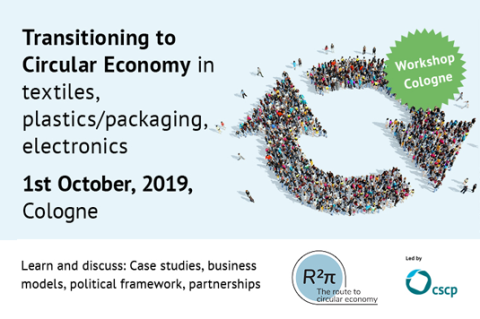 This “R2Pi – Route to Circular Economy” workshop is organised by the Collaborating Centre on Sustainable Consumption and Production (CSCP) as part of the European Union “R2Pi – Route to Circular Economy” project in which 16 partners from 9 countries have contributed to analysing business models, political frameworks and developed practical tools and methods to accelerate the transition to circularity. The workshop, to be held free of charge in Cologne on 1 October 2019, is aimed at business and association representatives, especially those from the plastics/packaging, electronics, and textiles sectors.