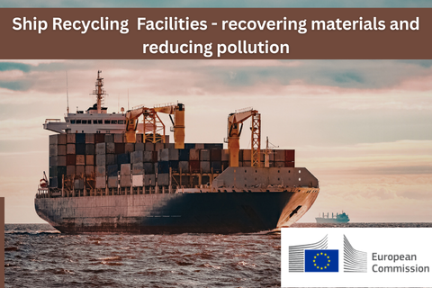 Ship Recycling Facilities - recovering materials and reducing pollution, with a photo of a large ship and the European Commission logo