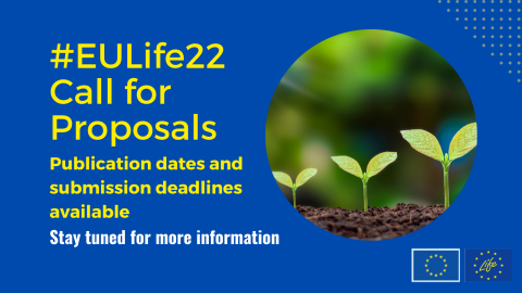 The anticipated submission deadlines for LIFE calls for proposals 2022 have been communicated. All LIFE Calls for proposals 2022 are expected to be published on the Funding & tender opportunities portal on 17 May 2022.