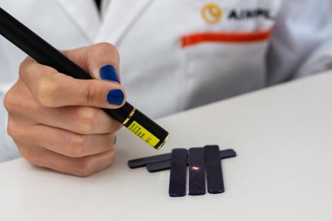 And now AIMPLAS, the Plastics Technology Centre and also a consortium member, has just completed research that confirms the feasibility of including an additive in the polyamide pellets as a tracker. When exposed to infrared rays, this tracker will reveal its presence in the fabrics. This is the first time it has been possible to demonstrate the traceability of the raw material used to make a fabric, which, in this case, is fishing nets. The result is a sample fabric produced by consortium member Sintex.
