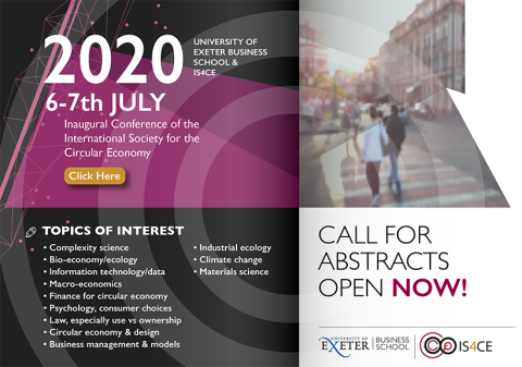 The International Society for Circular Economy (IS4CE) is organising its Inaugural International Conference on Circular Economy (IS4CE2020) at the Exeter Centre for Circular Economy (ECCE), University of Exeter, UK, from 6 to 7 July 2020.