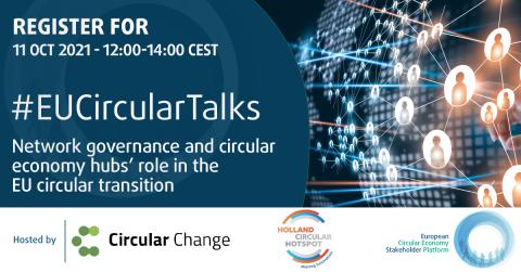 Circular Change, Holland Circular Hotspot and the ECESP invite you on 11 October at noon CEST to the #EUCircularTalks on the role of network governance and circular economy hubs in the EU circular transition. Special guest Prof. Jacqueline Cramer and the panelists will explore the impact of circular economy hubs on the ground. They will present cases and share experiences of the power of networks.